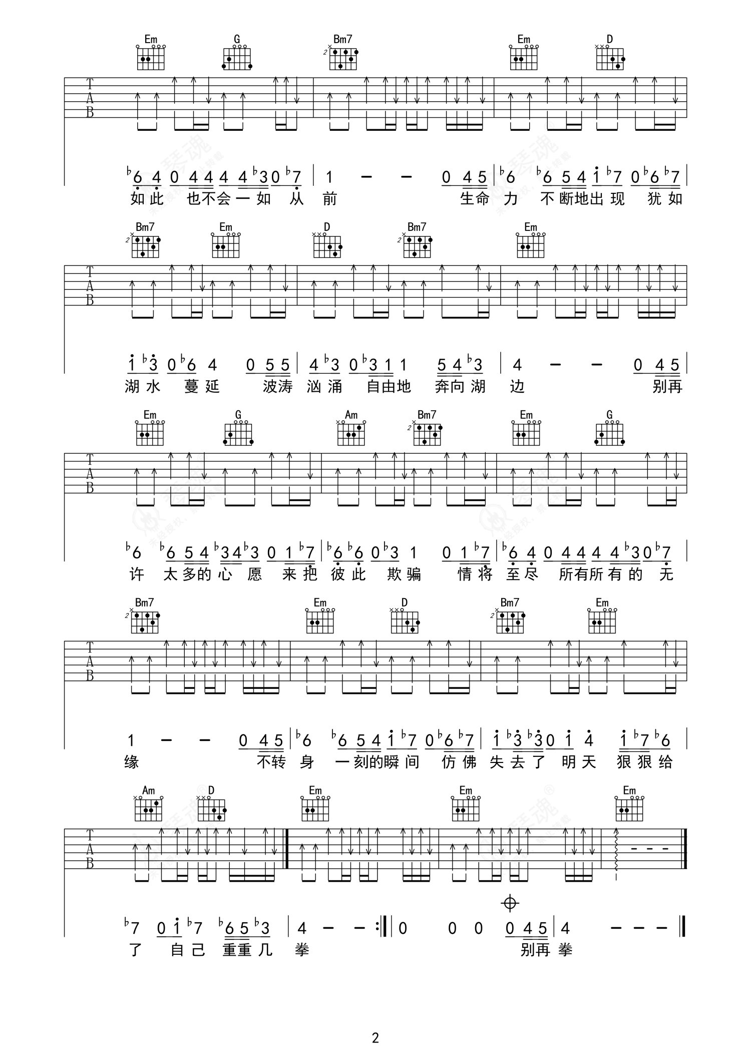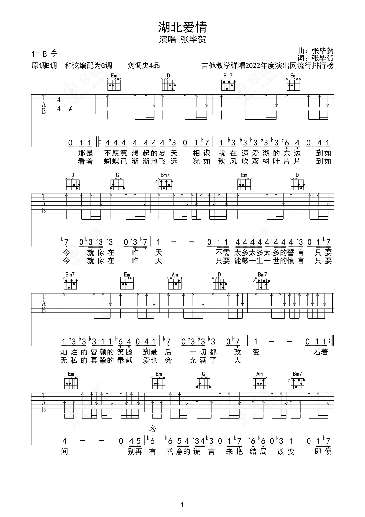张毕贺《湖北爱情》吉他谱 - G调弹唱六线谱