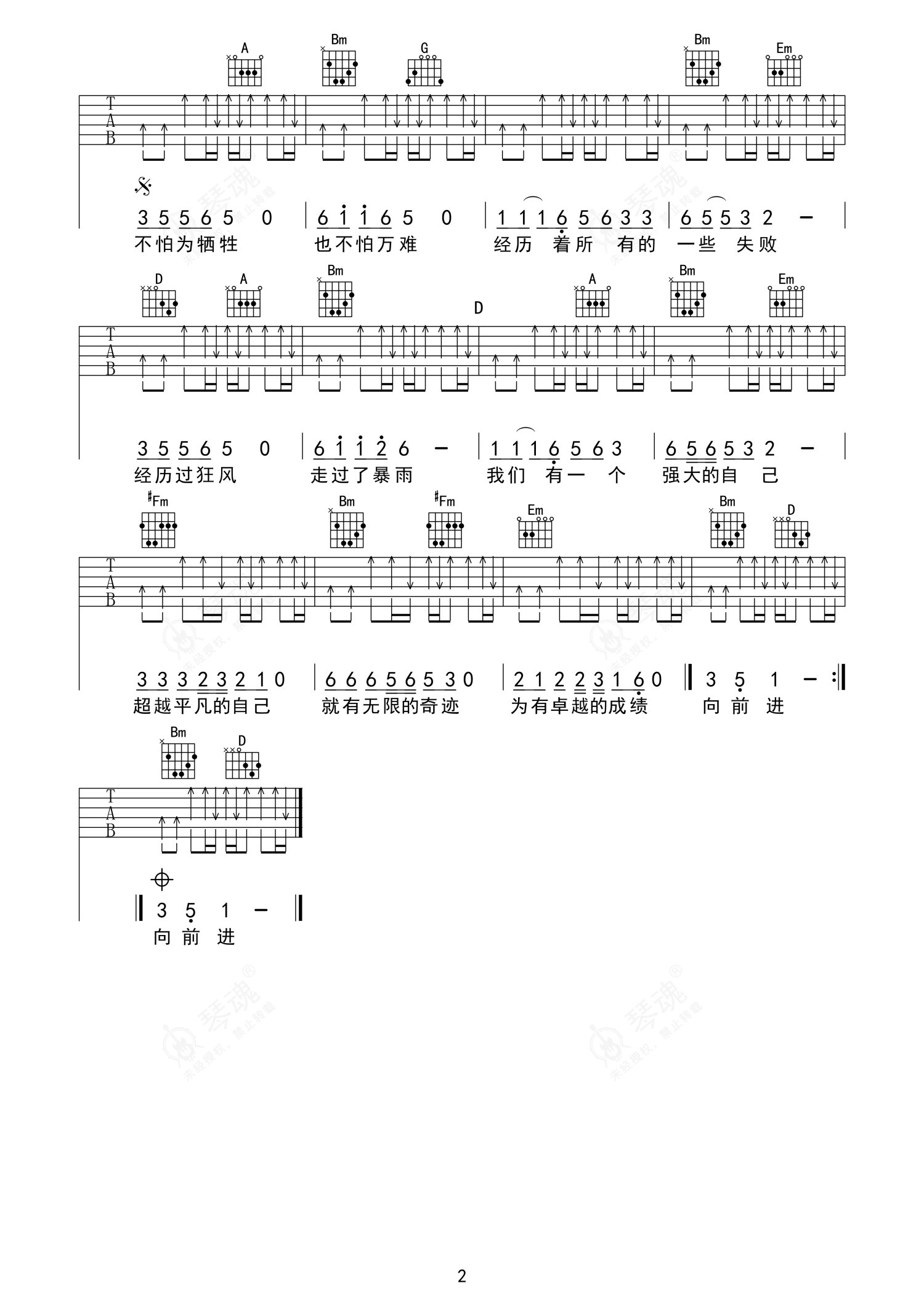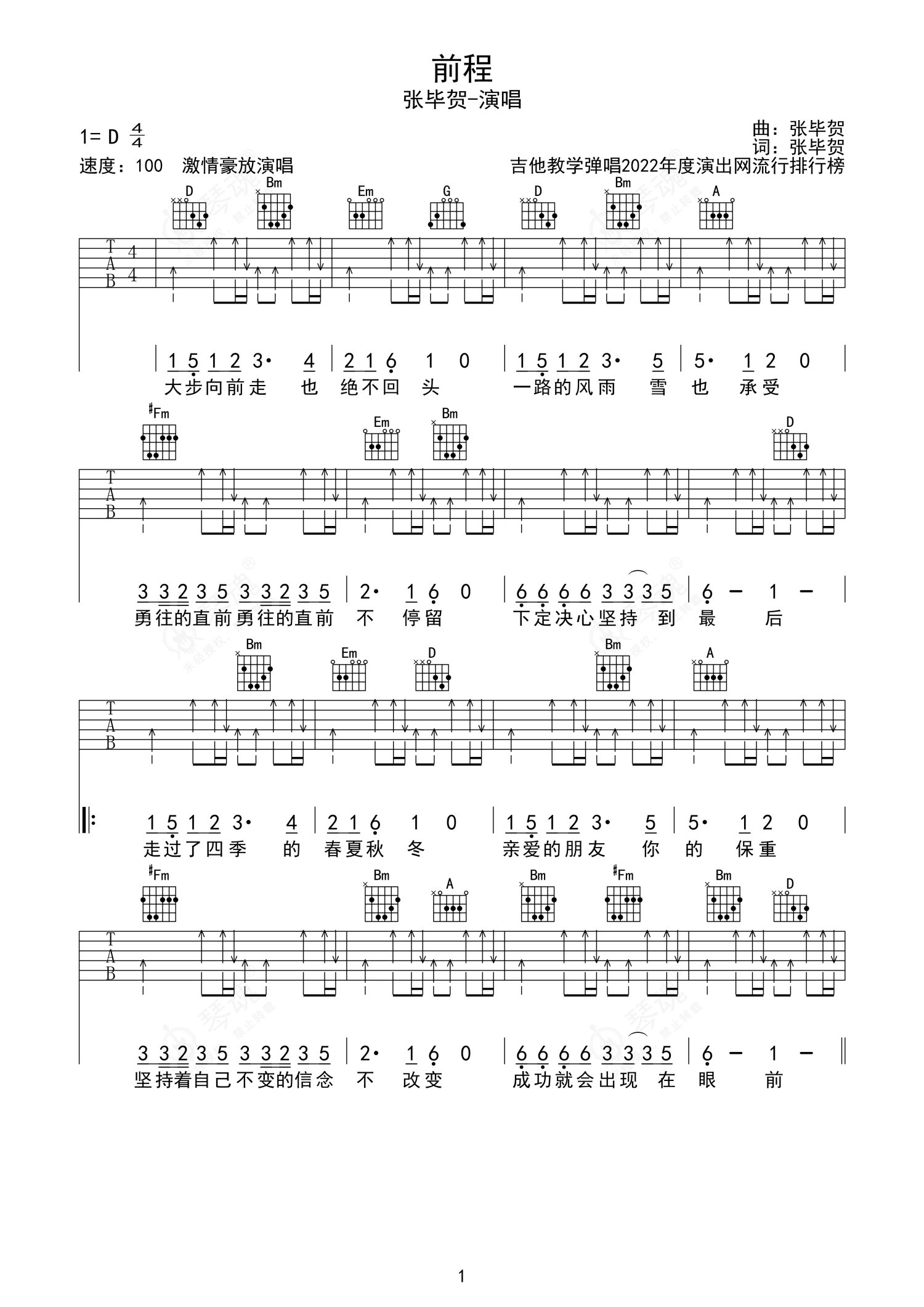 张毕贺《前程》吉他谱 - D调弹唱六线谱