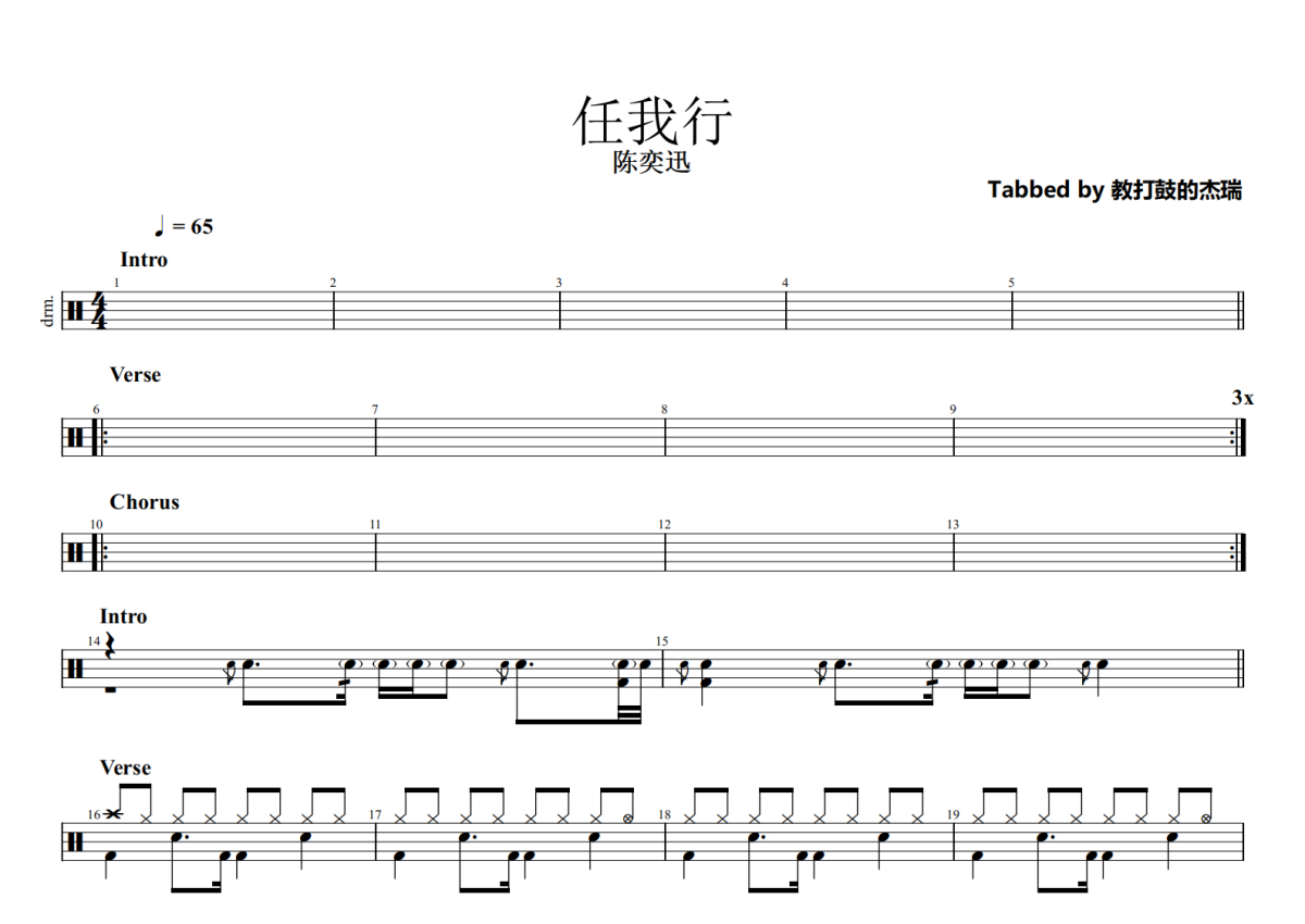 陈奕迅《任我行》鼓谱 - 架子鼓谱
