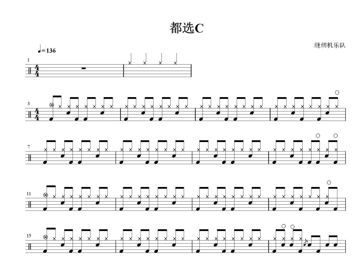 缝纫机乐队《都选C》鼓谱 - 架子鼓谱