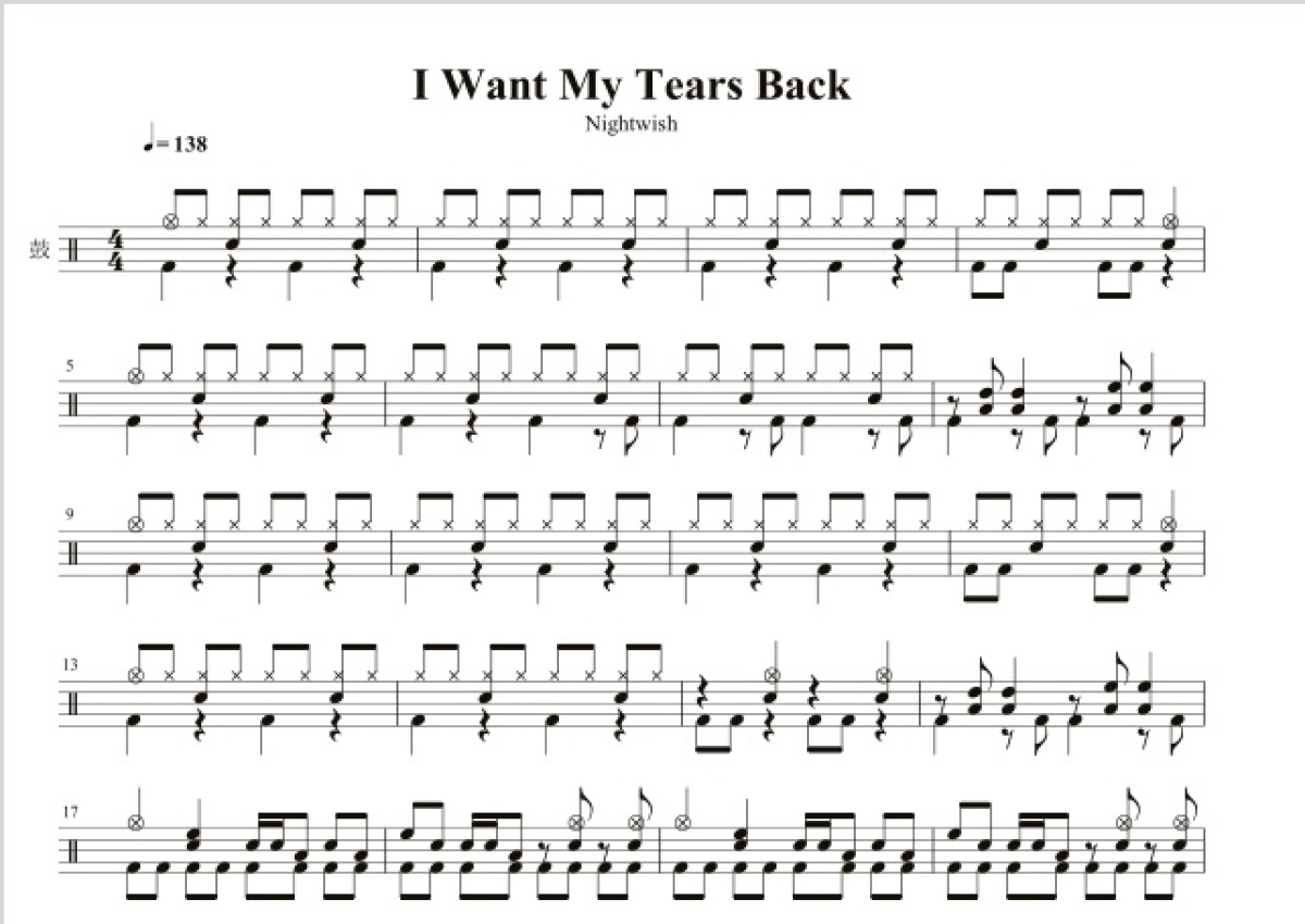 夜愿乐队《I wan't my tears back》鼓谱 - 架子鼓谱