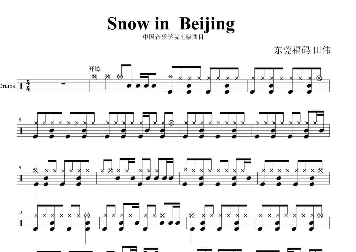 中国音乐学院7级《snow in Beijing》鼓谱 - 架子鼓谱