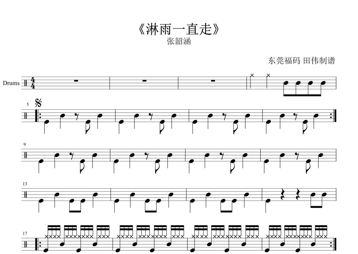 张韶涵《淋雨一直走》鼓谱 - 架子鼓谱