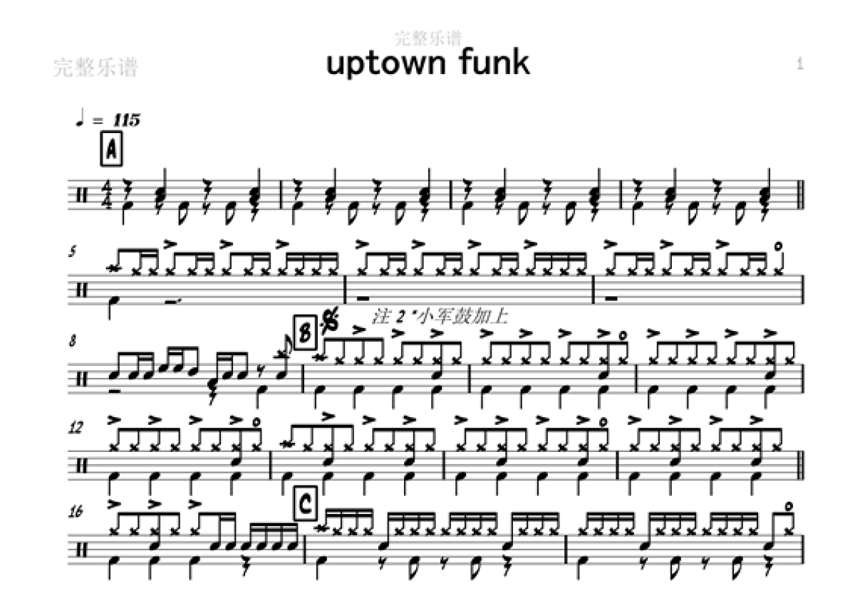 国外流行《uptown funk》鼓谱 - 架子鼓谱