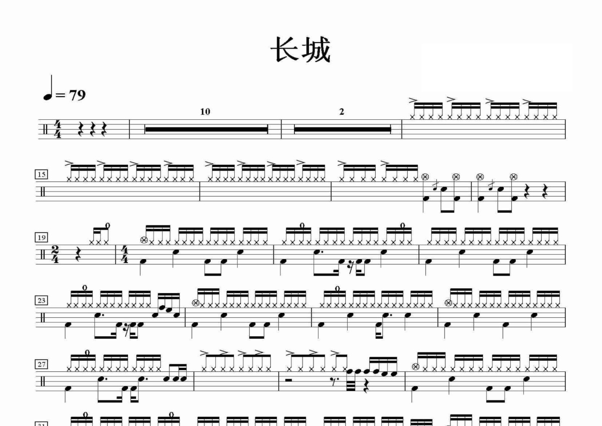 《长城》是Beyond演唱的一首歌曲,这份鼓谱共有三张高清图谱,图谱由 @田伟制谱工作室 编配上传,图谱使用五线谱编配,使用这份长城架子鼓谱,你将能够轻松地敲打出这首Beyond的长城,快来尝试吧。