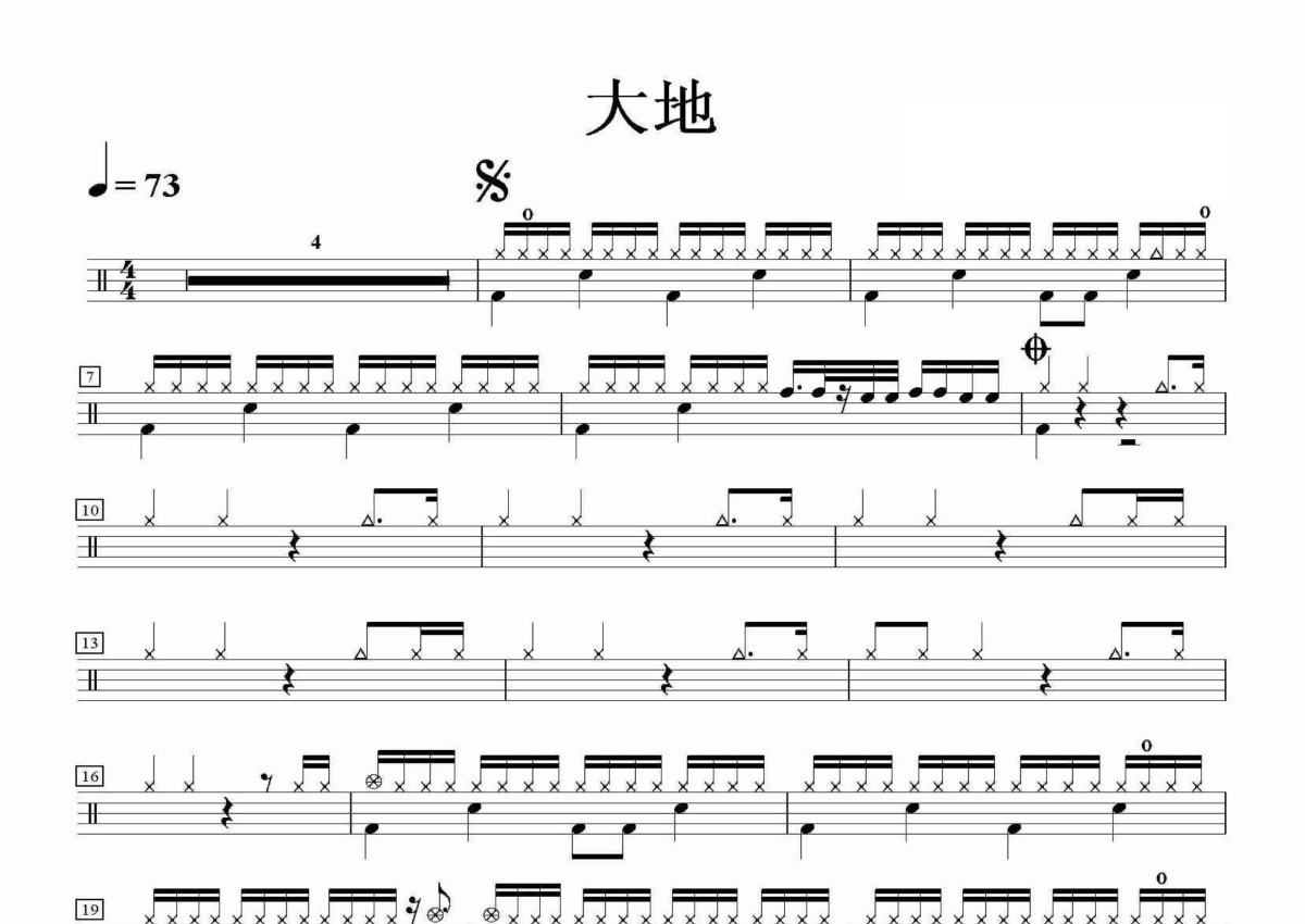 《大地》是Beyond演唱的一首歌曲,这份鼓谱共有两张高清图谱,图谱由 @田伟制谱工作室 编配上传,图谱使用五线谱编配,使用这份大地架子鼓谱,你将能够轻松地敲打出这首Beyond的大地,快来尝试吧。