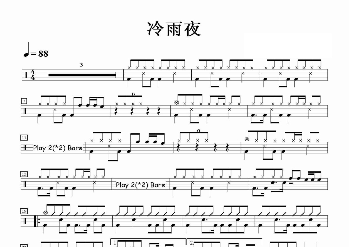Beyond《冷雨夜》鼓谱 - 架子鼓谱
