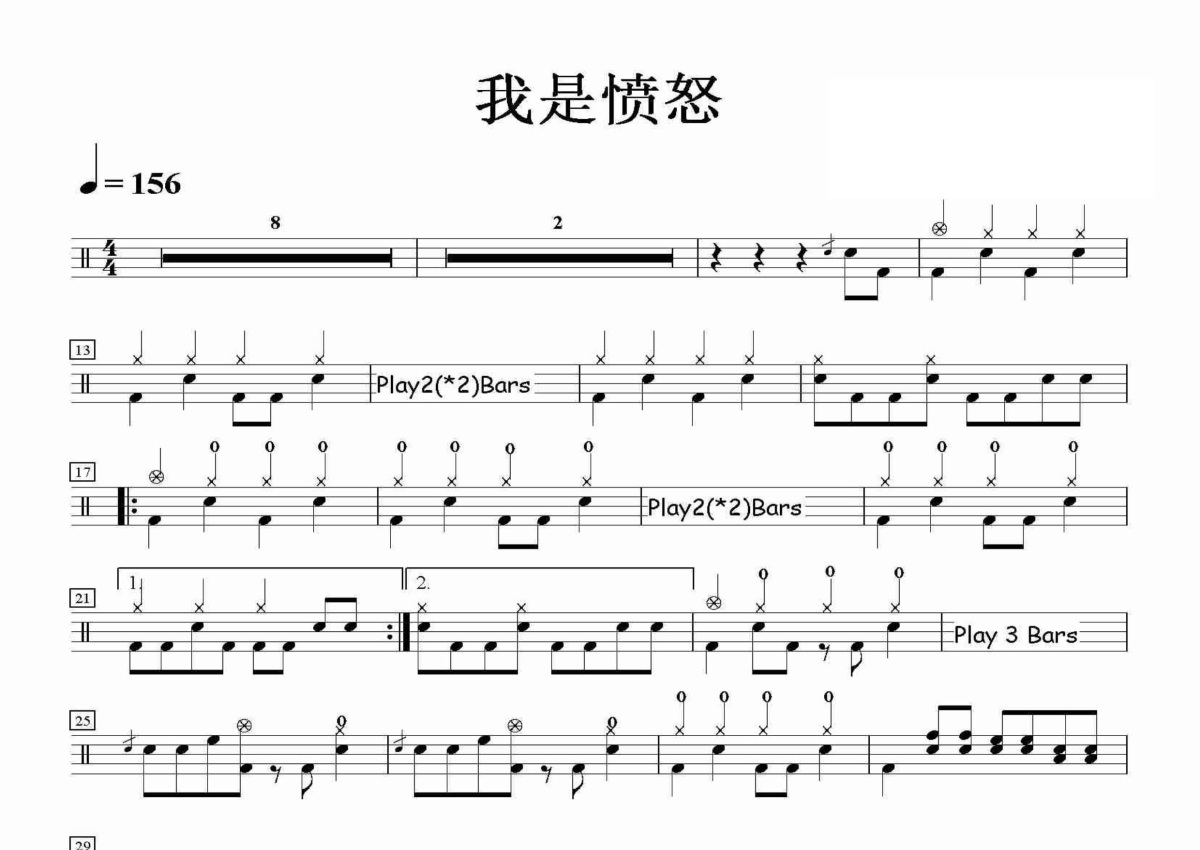 Beyond《我是愤怒》鼓谱 - 架子鼓谱