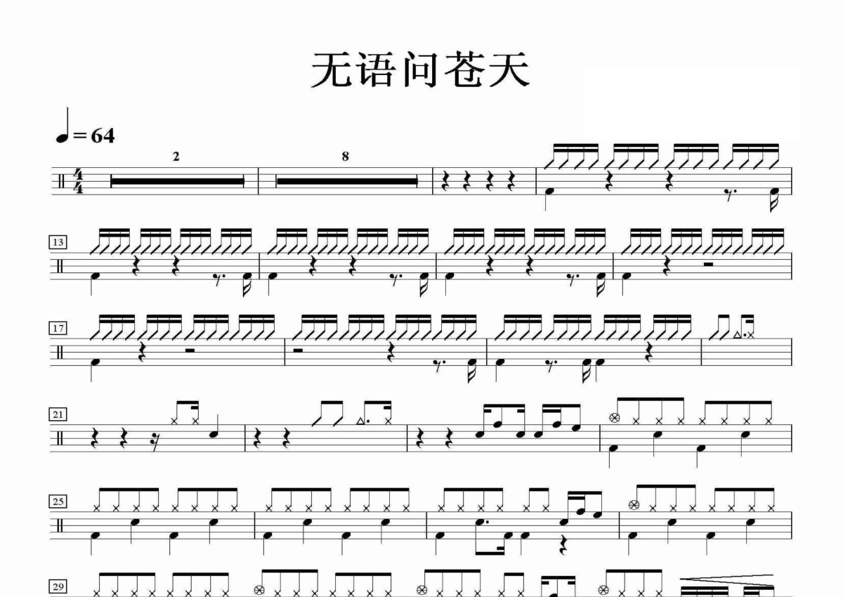 Beyond《无语问苍天》鼓谱 - 架子鼓谱