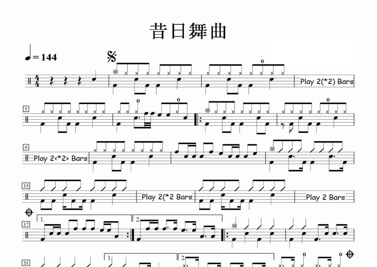 《昔日舞曲》是Beyond演唱的一首歌曲,这份鼓谱共有两张高清图谱,图谱由 @田伟制谱工作室 编配上传,图谱使用五线谱编配,使用这份昔日舞曲架子鼓谱,你将能够轻松地敲打出这首Beyond的昔日舞曲,快来尝试吧。