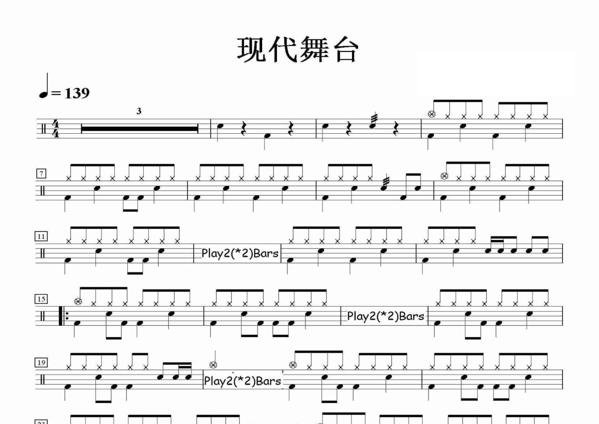 《现代舞台》是Beyond演唱的一首歌曲,这份鼓谱共有三张高清图谱,图谱由 @田伟制谱工作室 编配上传,图谱使用五线谱编配,使用这份现代舞台架子鼓谱,你将能够轻松地敲打出这首Beyond的现代舞台,快来尝试吧。