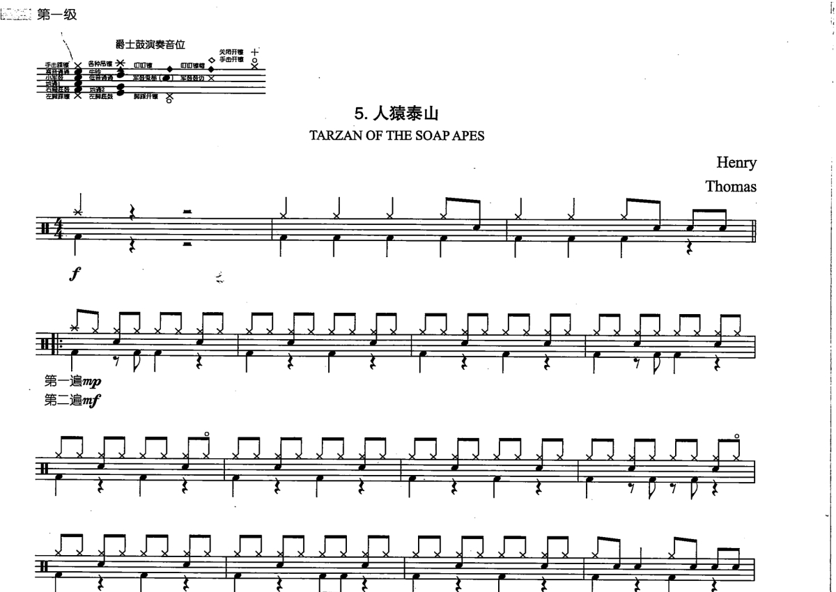 考级曲《人猿泰山》鼓谱 - 架子鼓谱