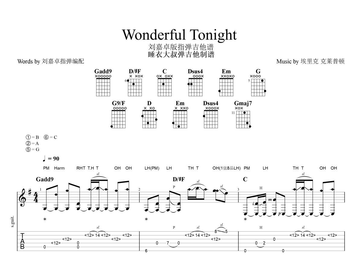 埃里克 克莱普顿《Wonderful Tonight》吉他谱 - G调独奏六线谱 - 刘嘉卓版