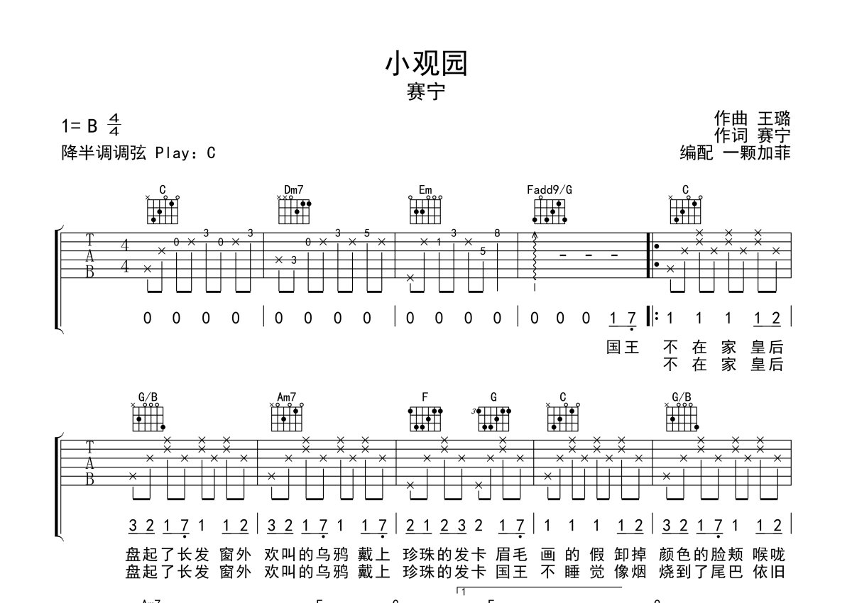 赛宁《小观园》吉他谱 - C调弹唱六线谱