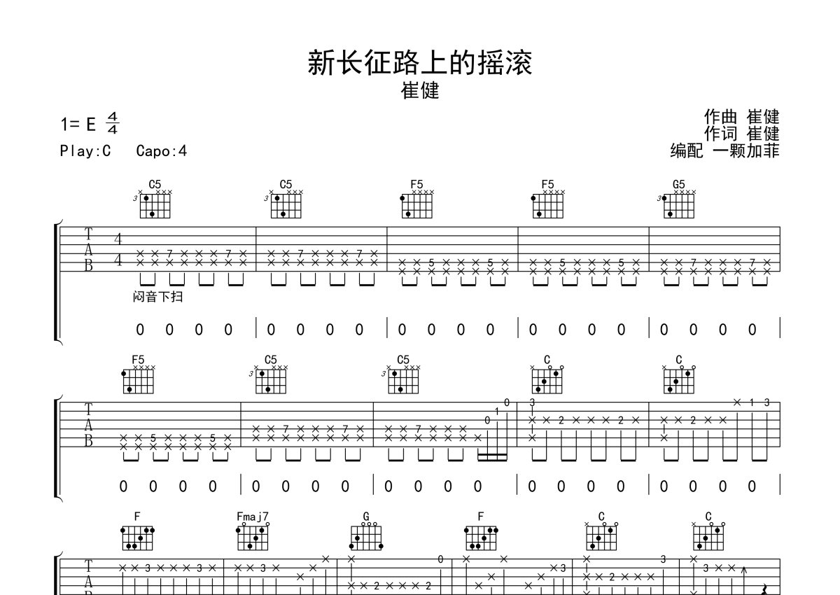 崔健《新长征路上的摇滚》吉他谱 - C调弹唱六线谱