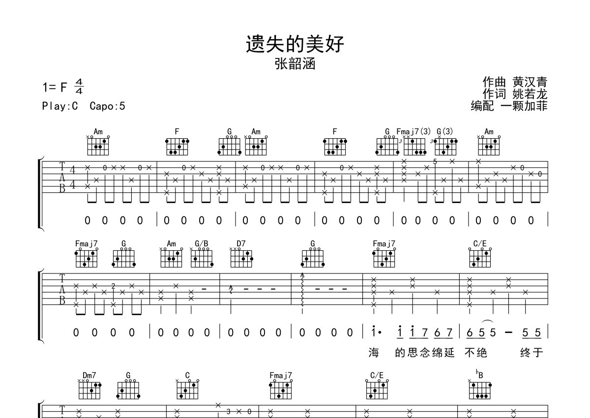 张韶涵《遗失的美好》吉他谱 - C调弹唱六线谱