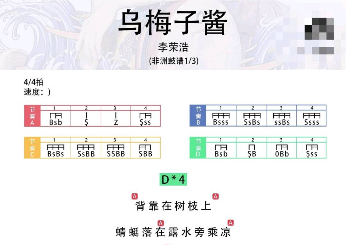 李荣浩《乌梅子酱》鼓谱 - 非洲鼓谱