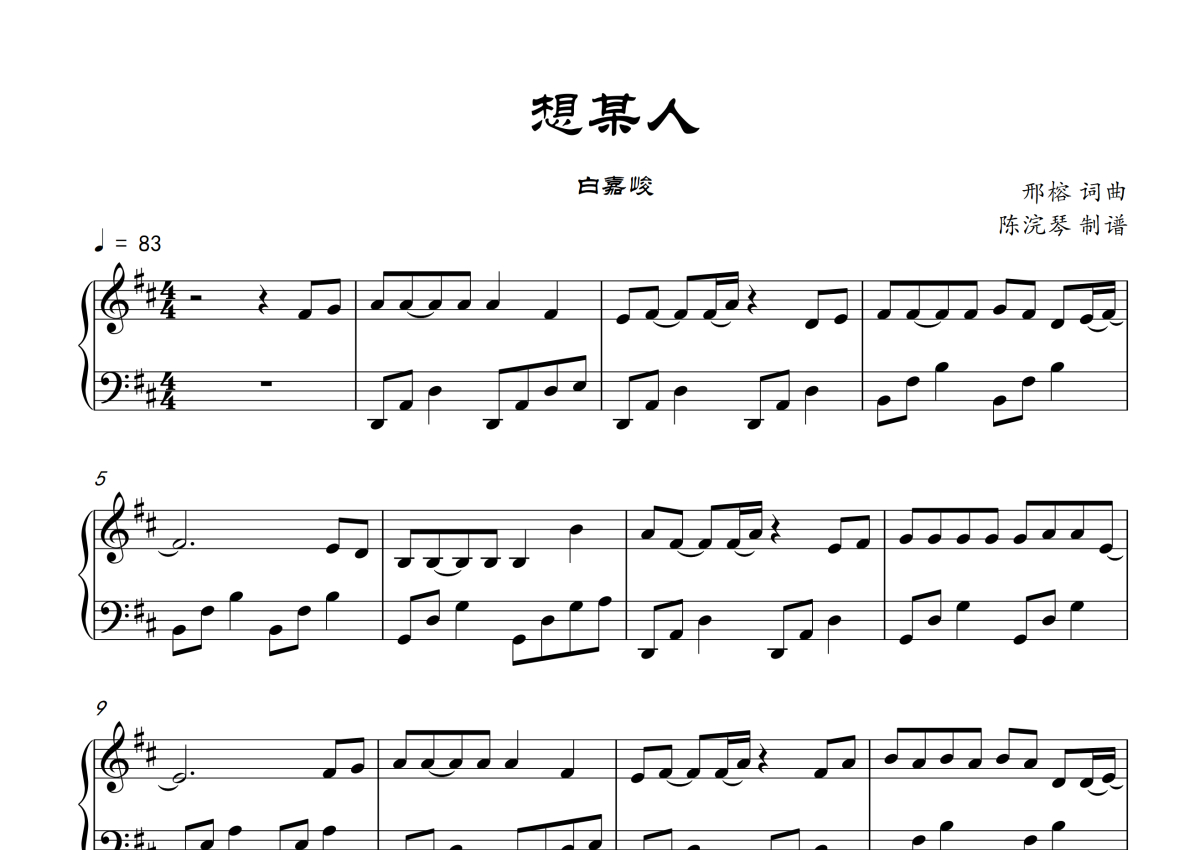 白嘉峻《想某人》钢琴谱