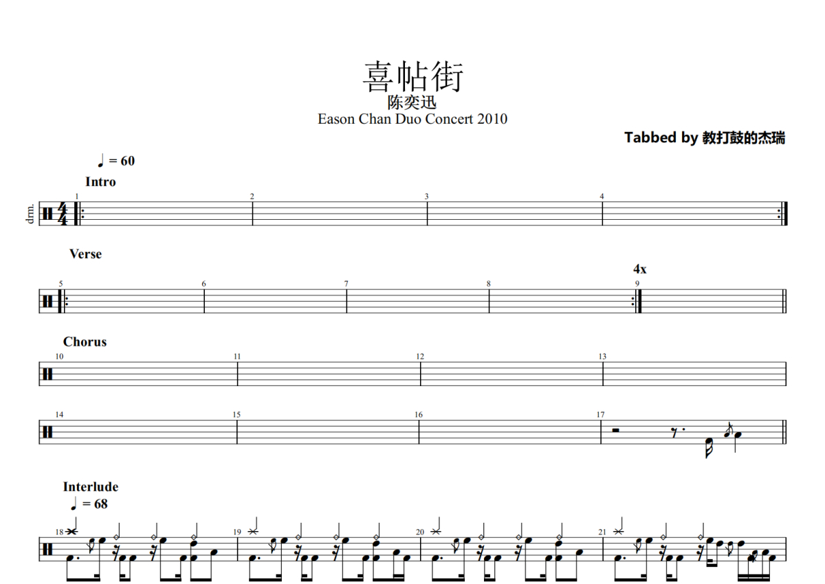 陈奕迅《喜帖街》鼓谱 - 架子鼓谱 - Eason Chan Duo Concert 2010