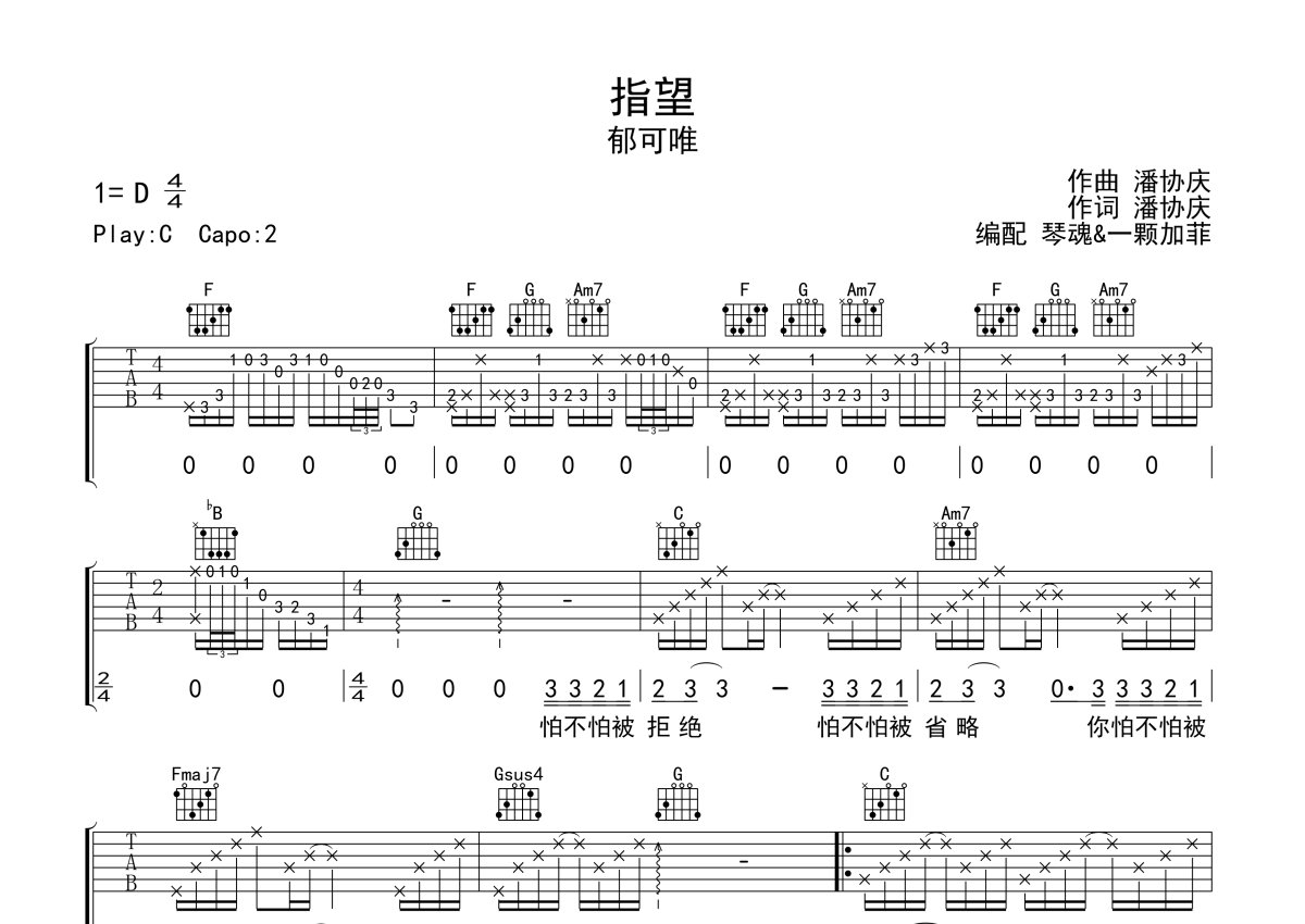 郁可唯《指望》吉他谱 - C调弹唱六线谱