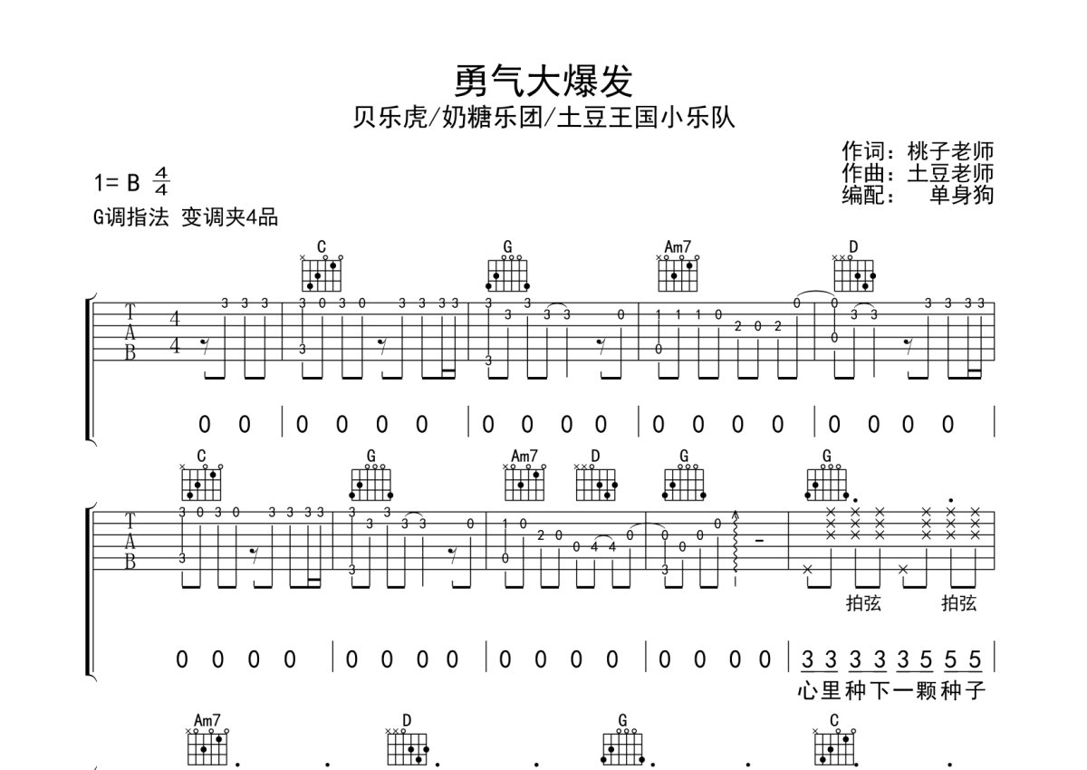 贝乐虎/奶糖乐团/土豆王国小乐队《勇气大爆发》吉他谱 - G调弹唱六线谱