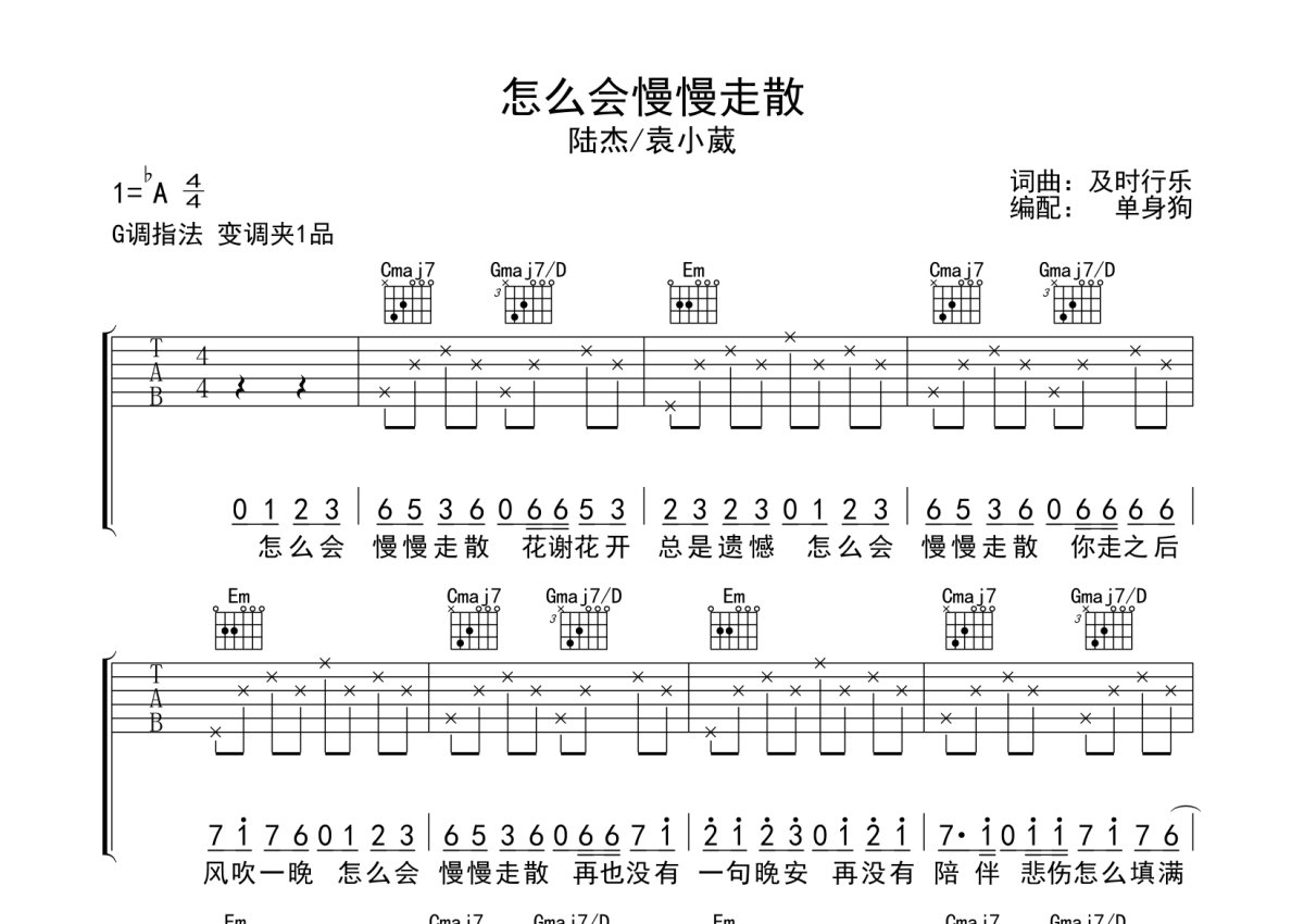 陆杰/袁小葳《怎么会慢慢走散》吉他谱 - G调弹唱六线谱