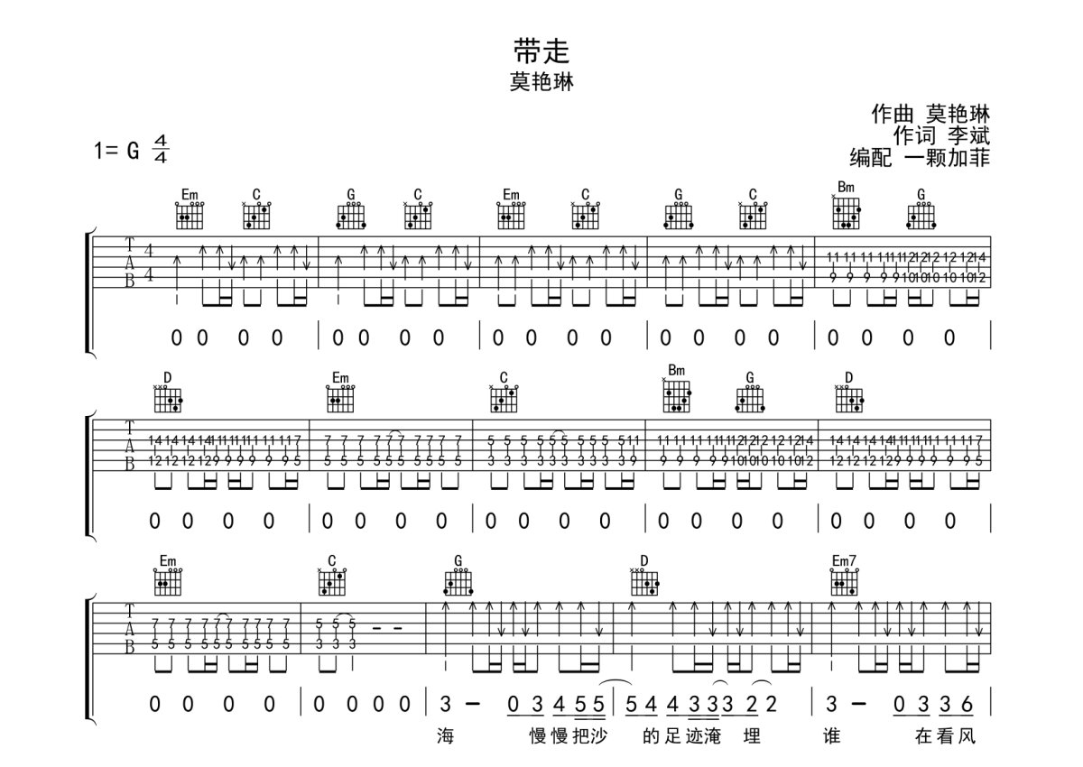 莫艳琳《带走》吉他谱 - G调弹唱六线谱