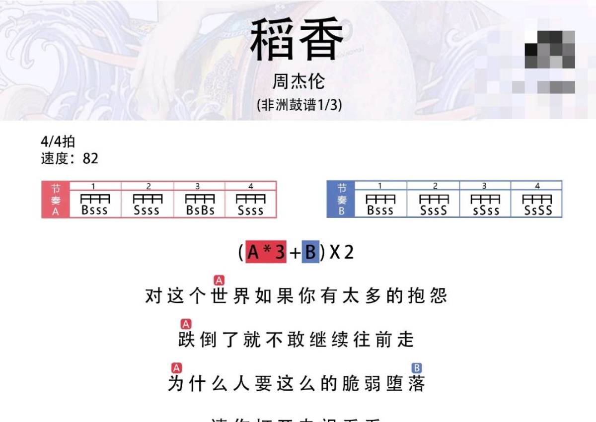 周杰伦《稻香》鼓谱 - 非洲鼓谱