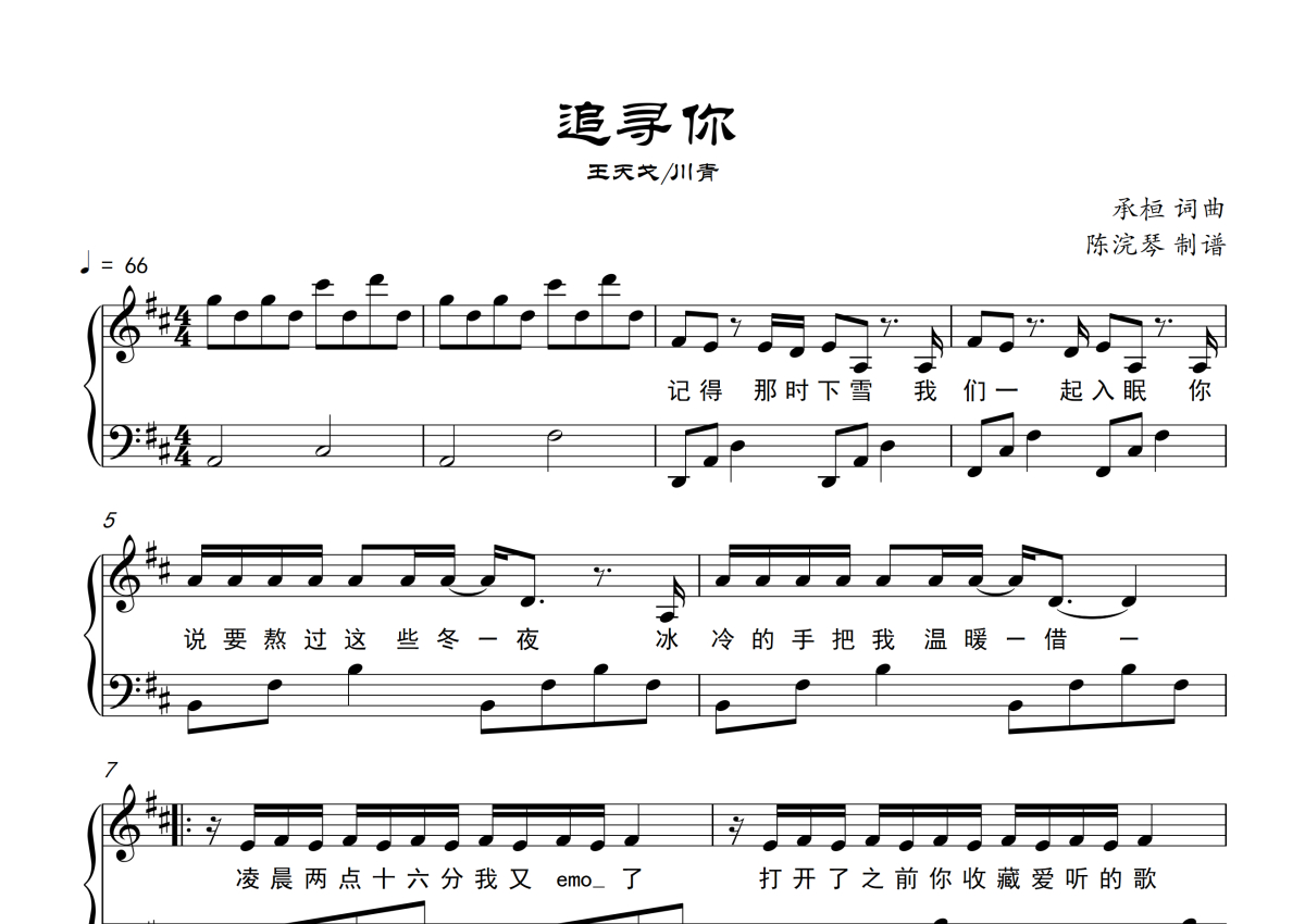 王天戈/川青《追寻你》钢琴谱