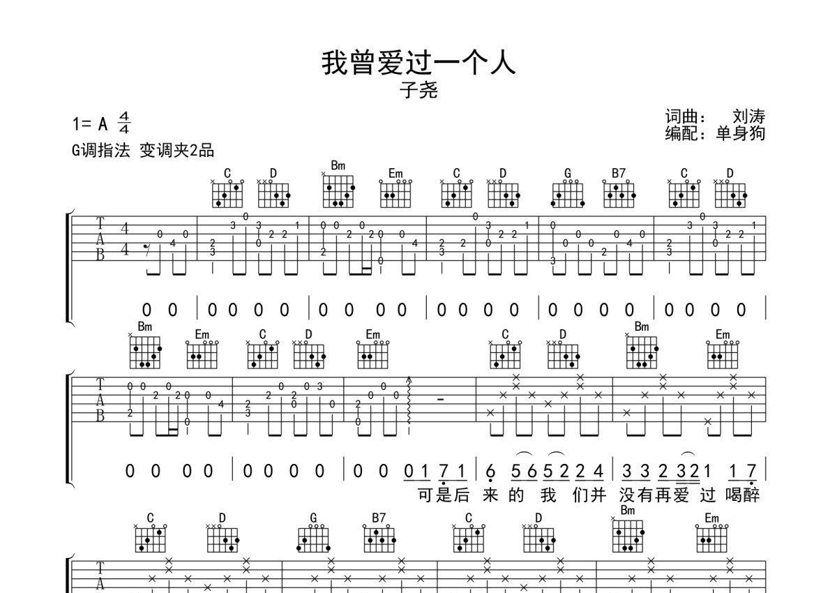 子尧《我曾爱过一个人》吉他谱 - G调弹唱六线谱
