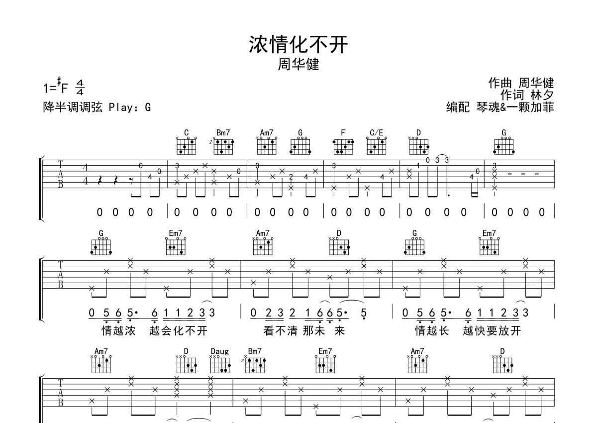 周华健《浓情化不开》吉他谱 - G调弹唱六线谱