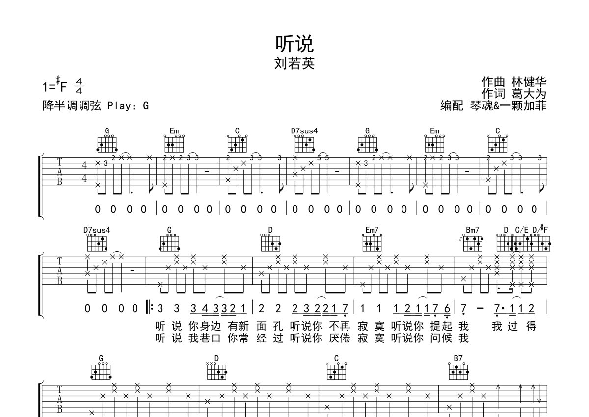 刘若英《听说》吉他谱 - G调弹唱六线谱