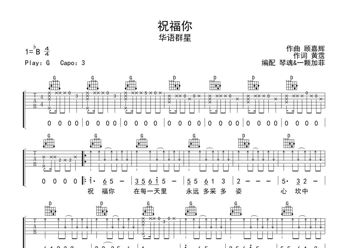华语群星《祝福你》吉他谱 - G调弹唱六线谱