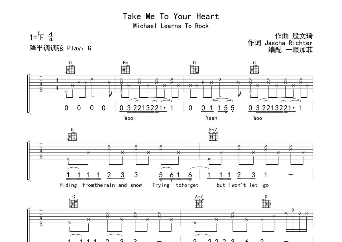 Michael Learns To Rock《Take Me to Your Heart》吉他谱 - G调弹唱六线谱