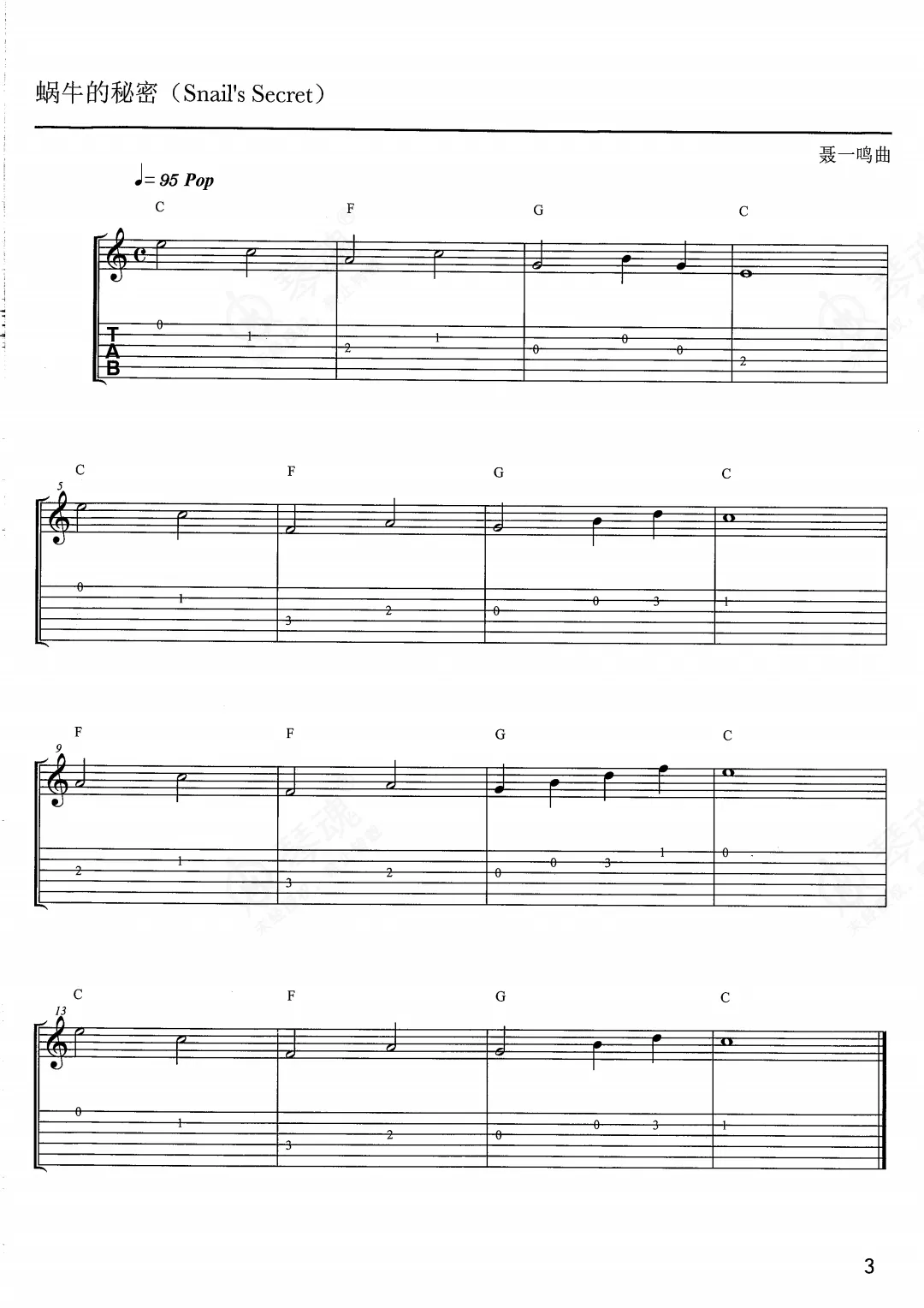 迷笛《蜗牛的秘密》电吉他谱