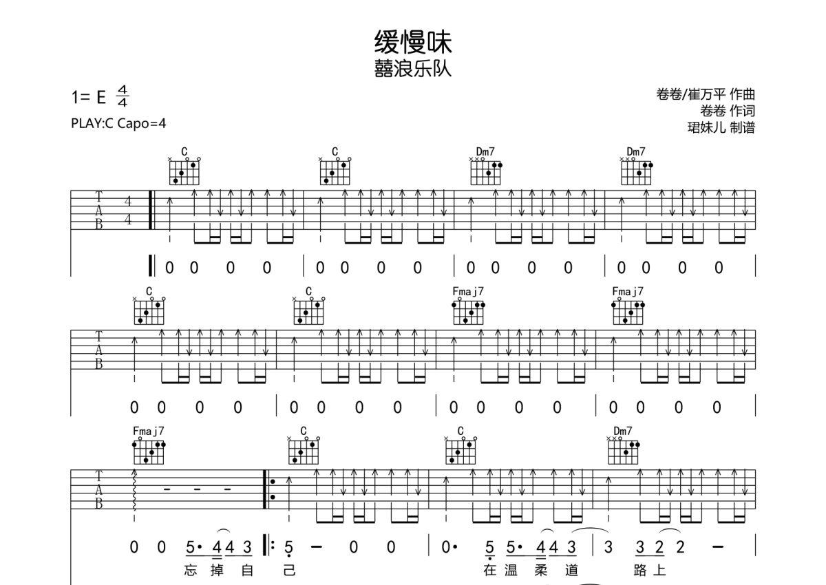 囍浪乐队《缓慢味》吉他谱 - C调弹唱六线谱