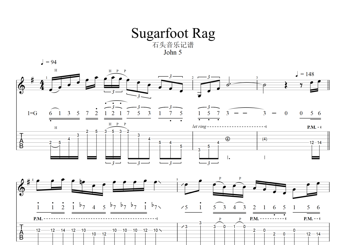 john5《Sugarfoot Rag》电吉他谱 - 原版记谱