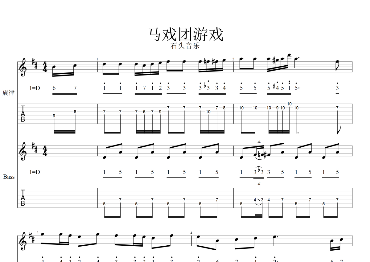 石头音乐原版记谱