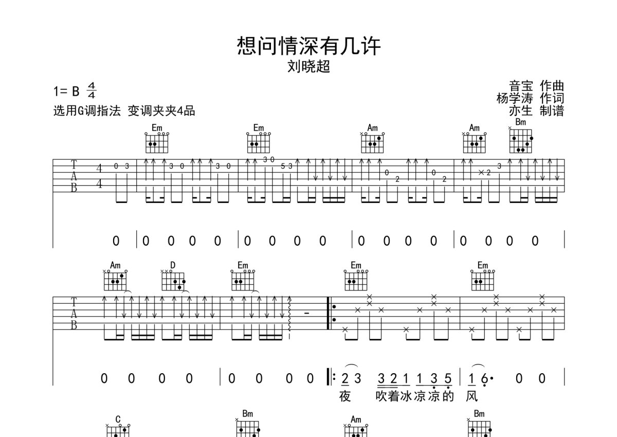 刘晓超《想问情深有几许》吉他谱 - G调弹唱六线谱