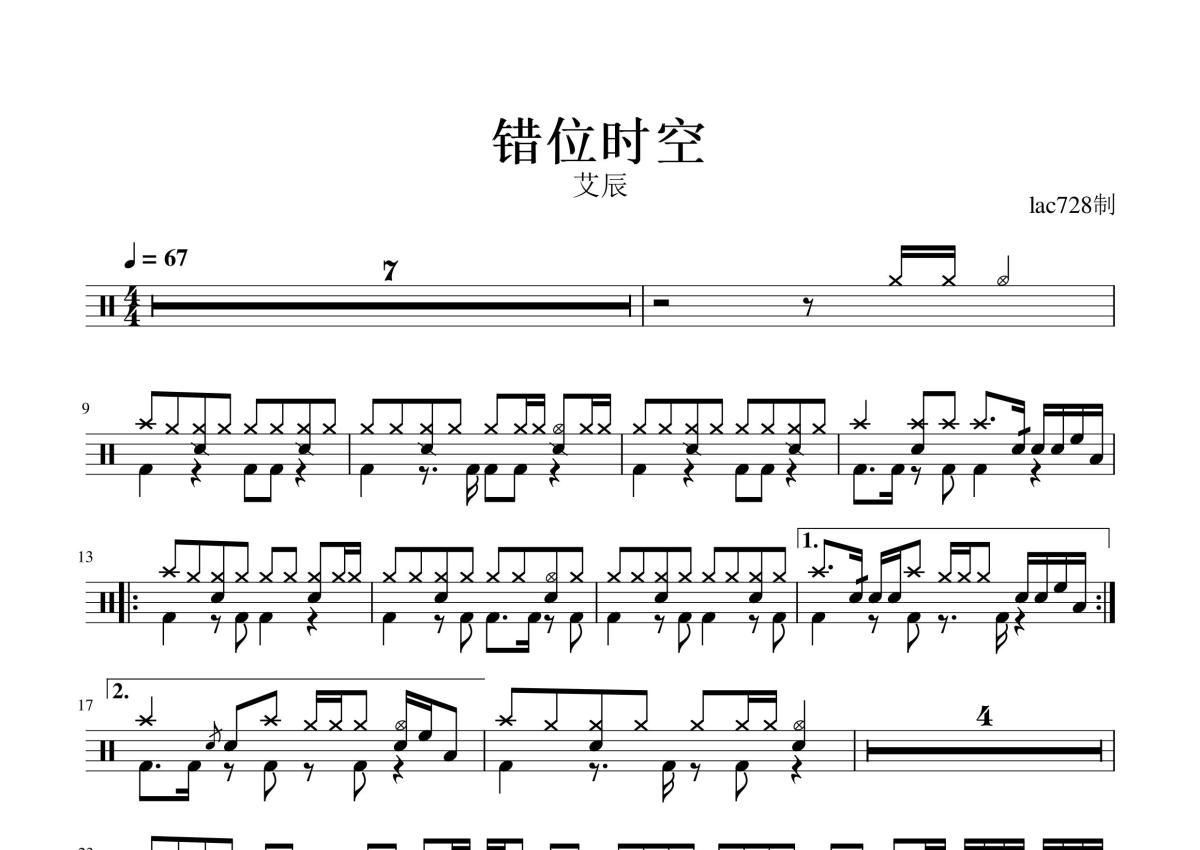 艾辰《错位时空》鼓谱 - 架子鼓谱