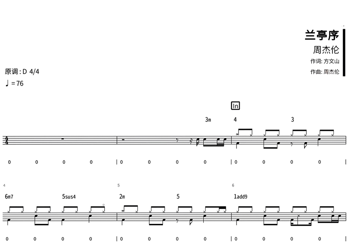 周杰伦《兰亭序》鼓谱 - 架子鼓谱