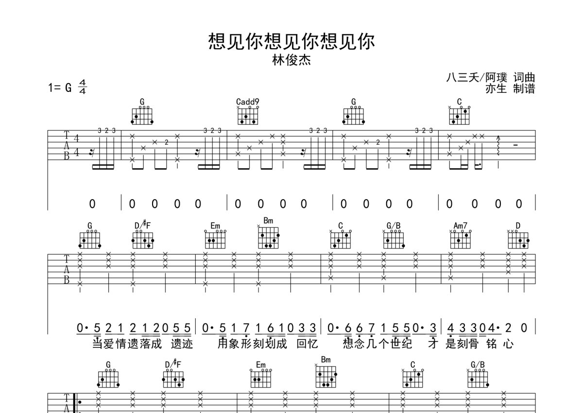 林俊杰《想见你想见你想见你》吉他谱 - G调弹唱六线谱