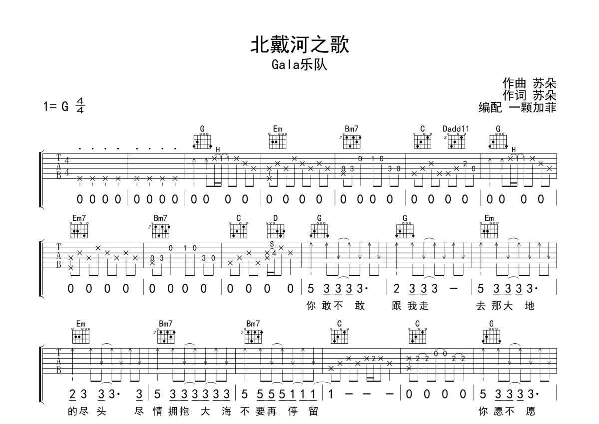 GALA《北戴河之歌》吉他谱 - G调弹唱六线谱