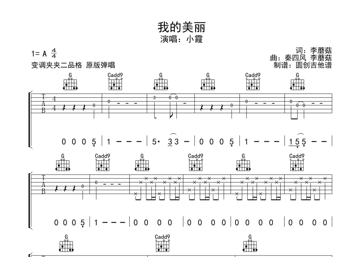 小霞《我的美丽》吉他谱 - G调弹唱六线谱