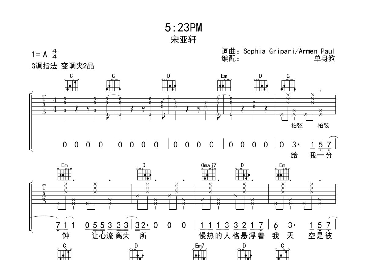 宋亚轩《5:23PM》吉他谱 - G调弹唱六线谱