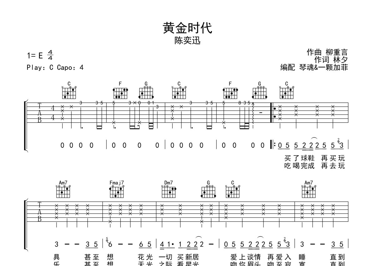 陈奕迅《黄金时代》吉他谱 - C调弹唱六线谱