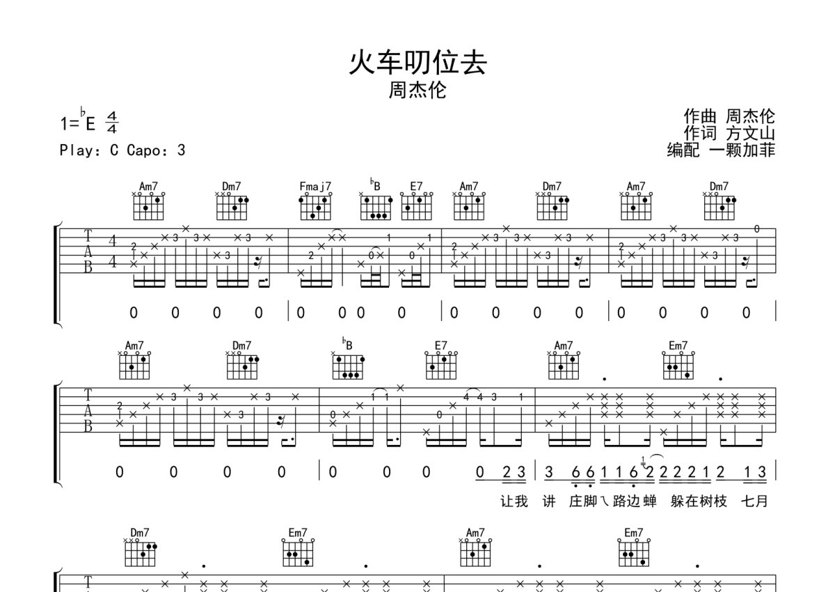 周杰伦《火车叨位去》吉他谱 - C调弹唱六线谱