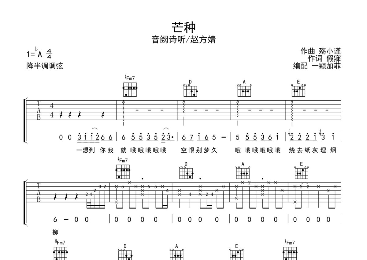 音阙诗听/赵方婧《芒种》吉他谱 - A调弹唱六线谱