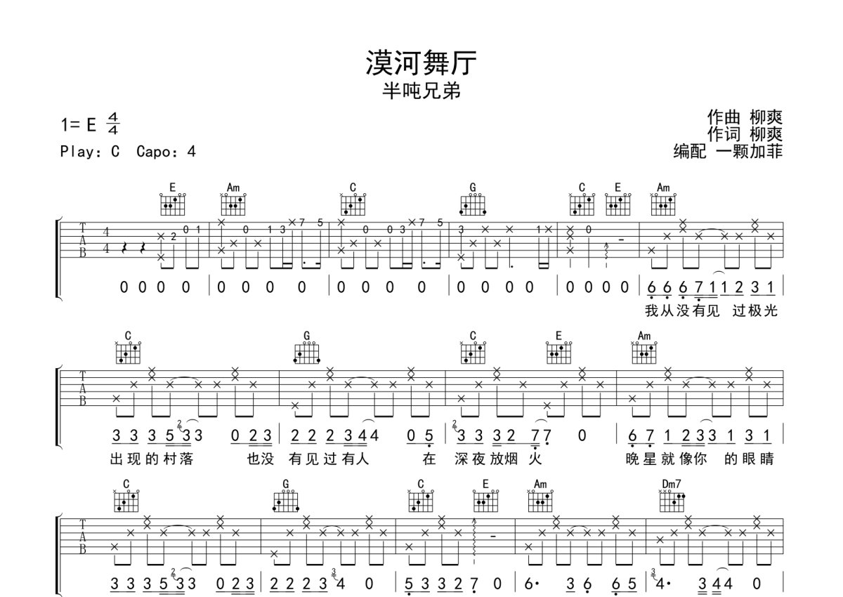 半吨兄弟《漠河舞厅》吉他谱 - C调弹唱六线谱