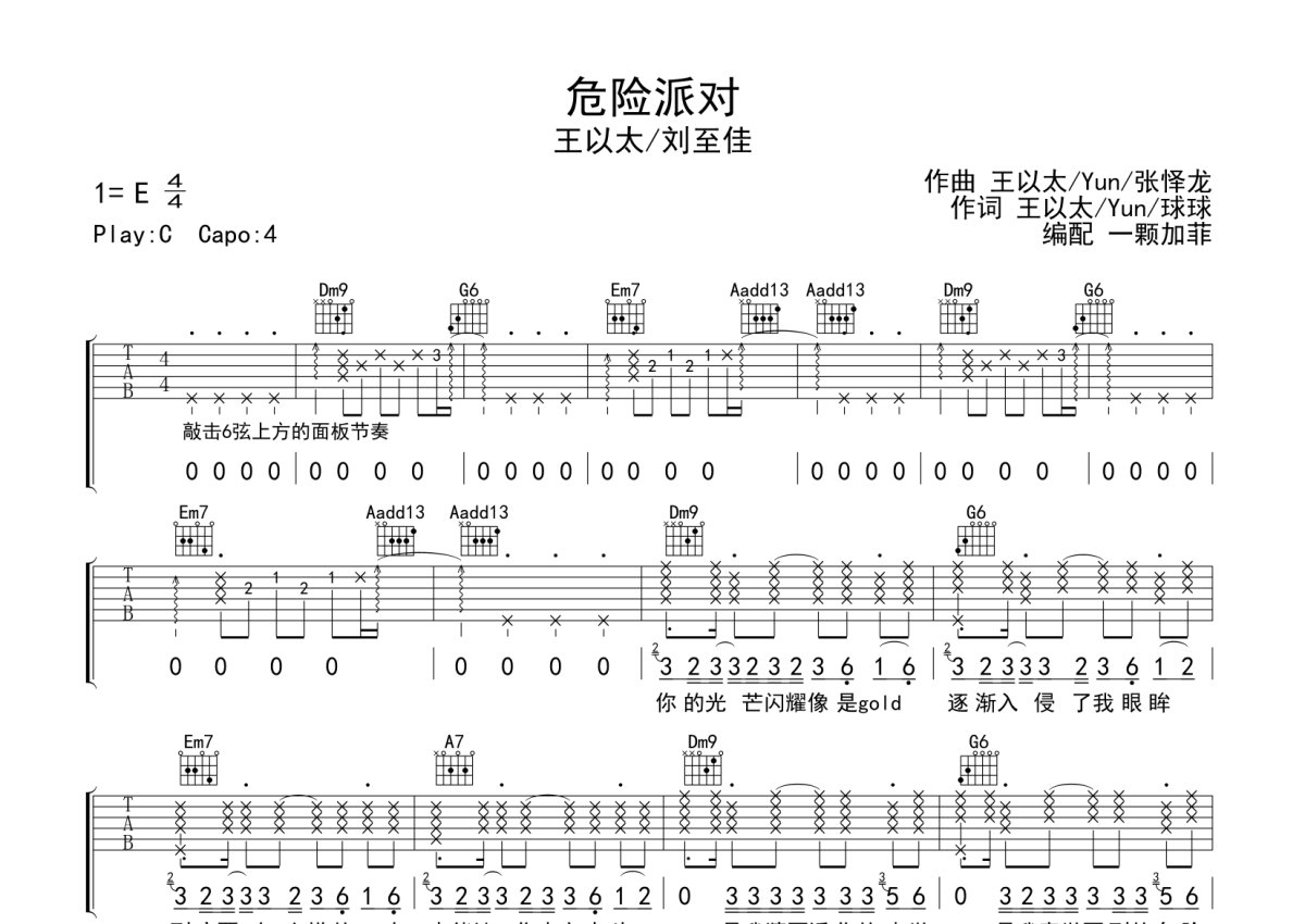 王以太/刘至佳《危险派对》吉他谱 - C调弹唱六线谱